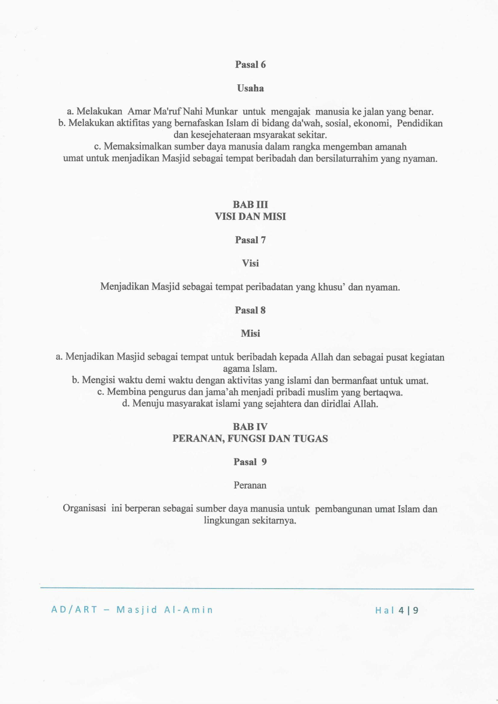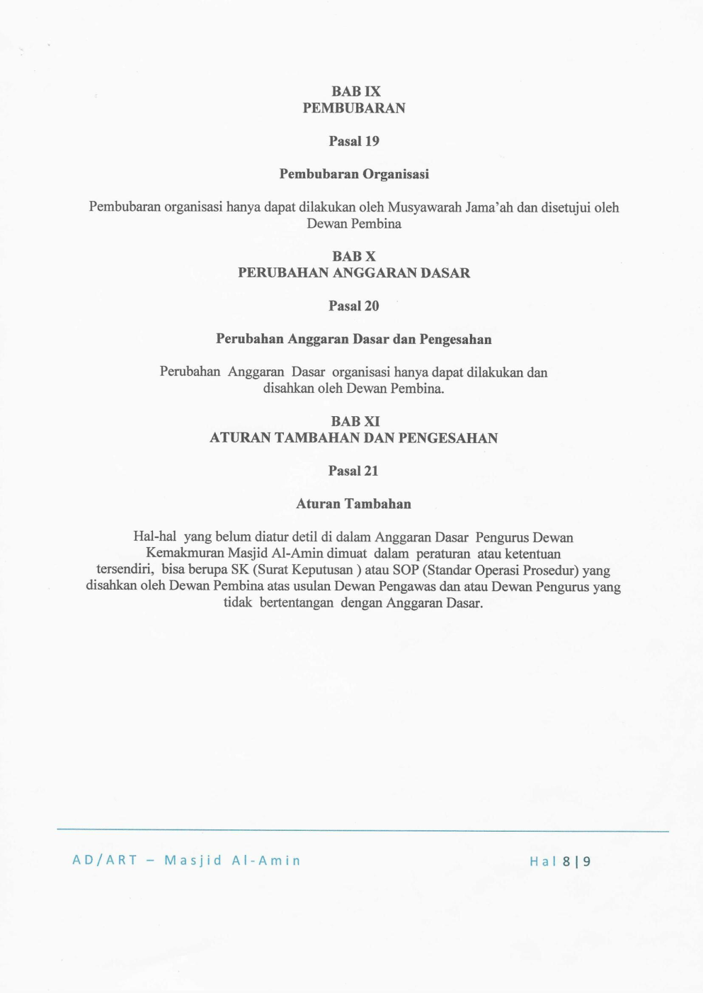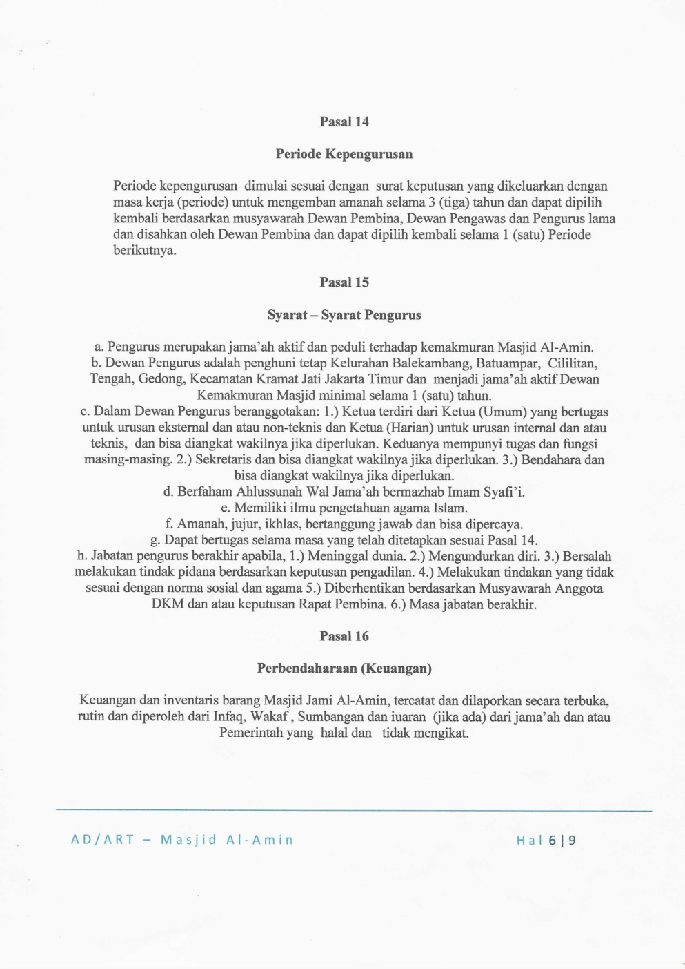AD-ART Masjid Al-Amin - Condet, Jakarta