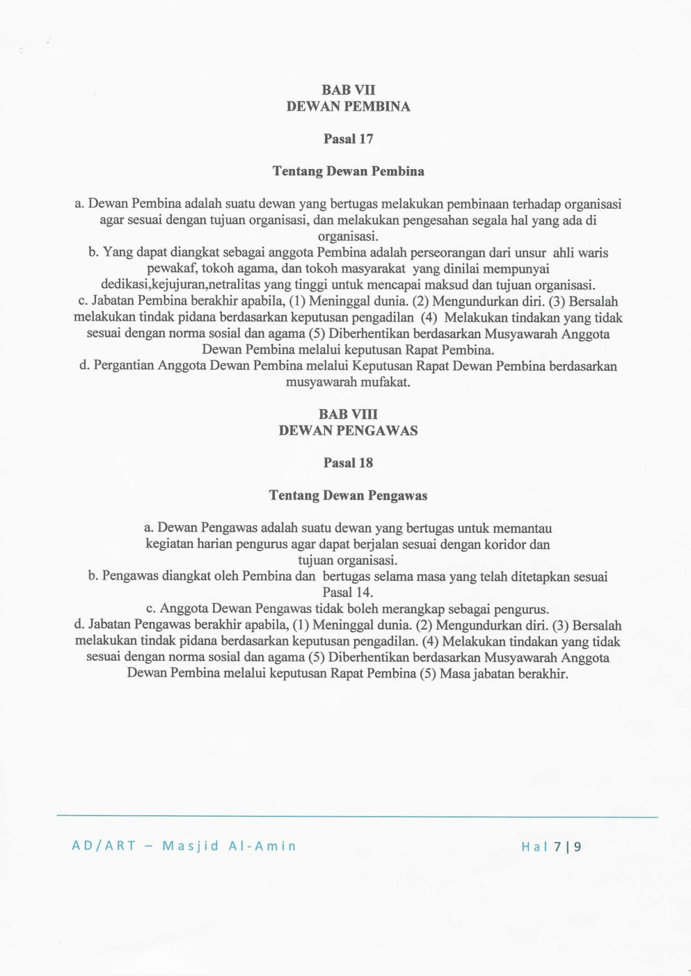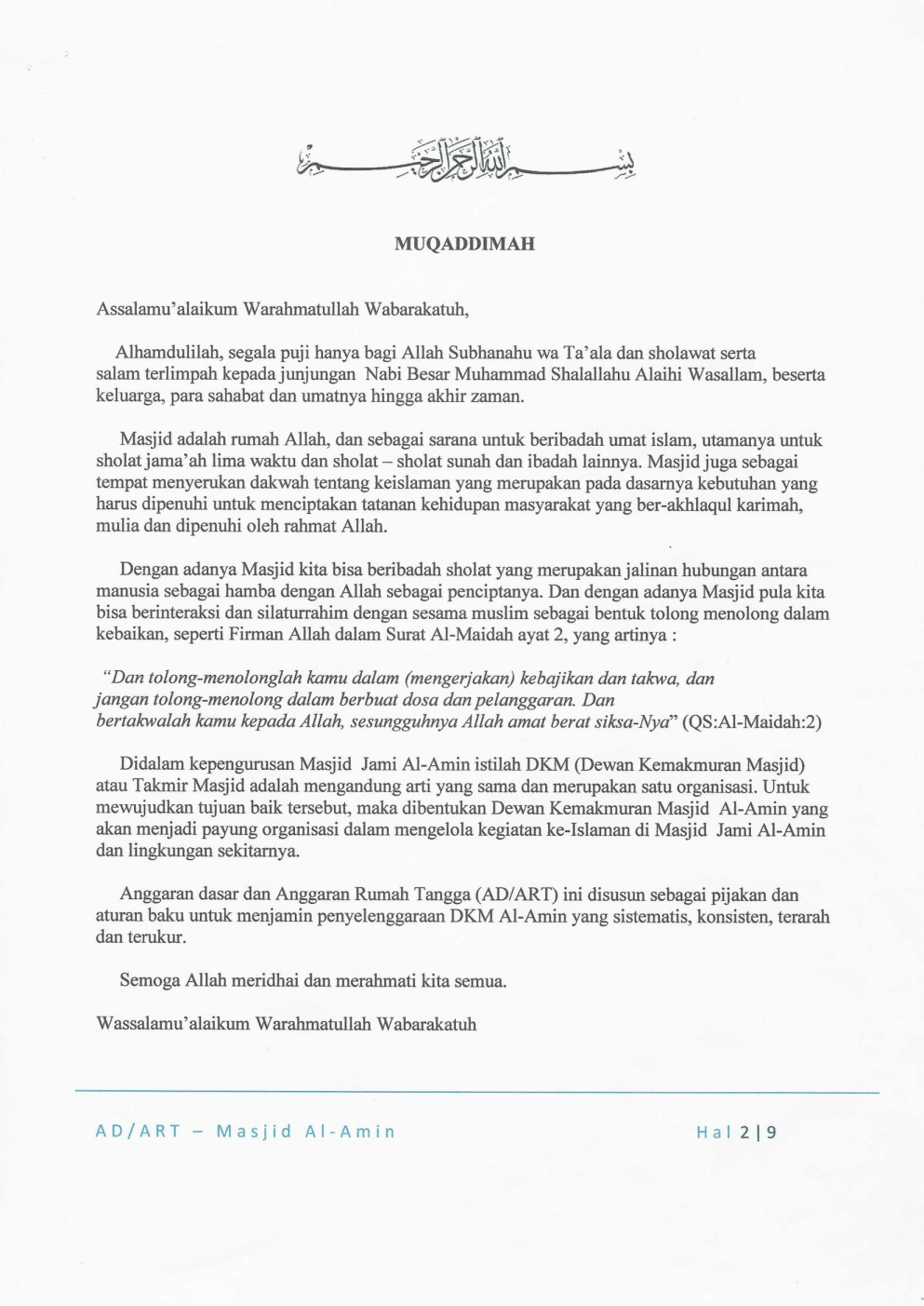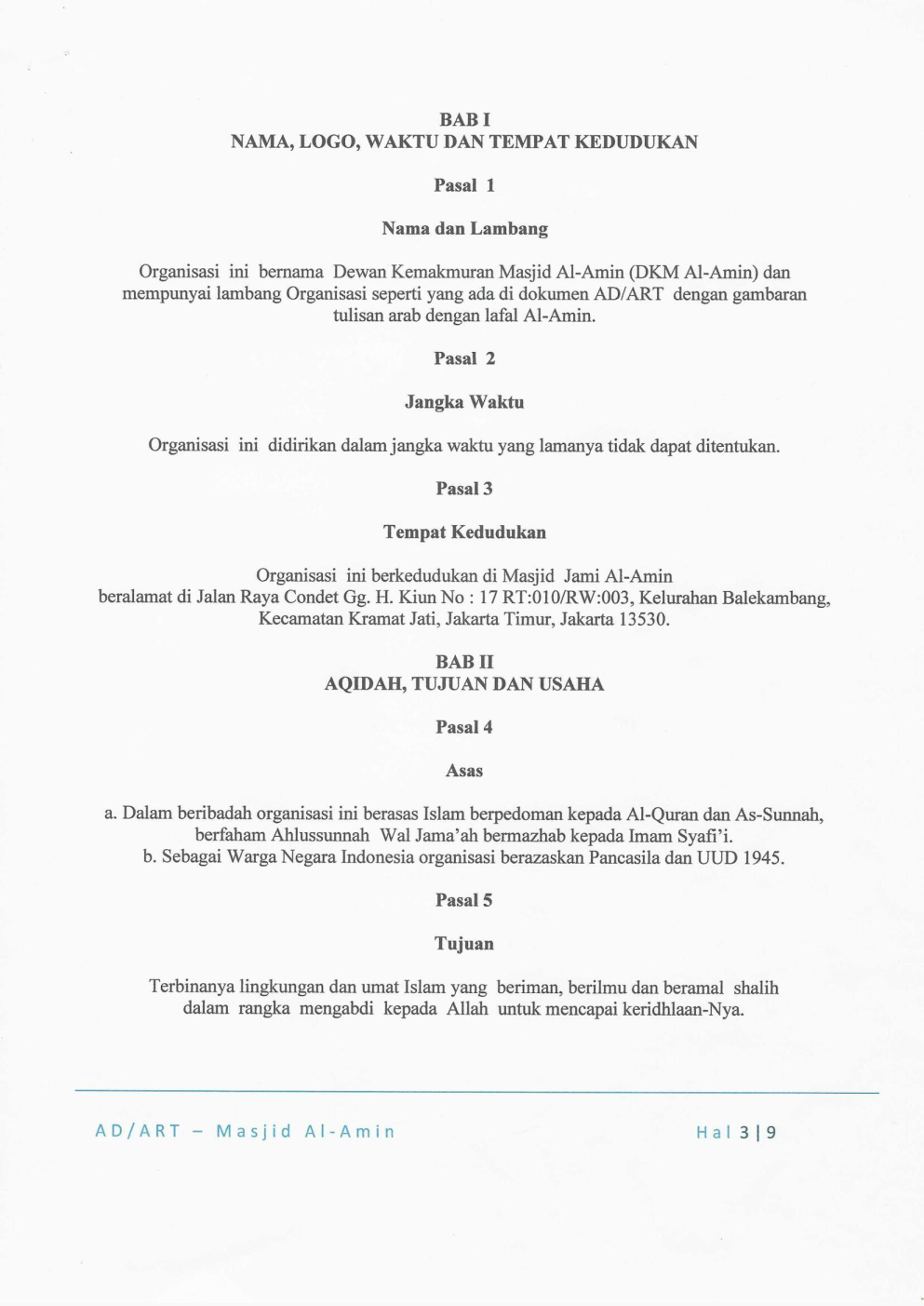 AD-ART Masjid Al-Amin - Condet, Jakarta